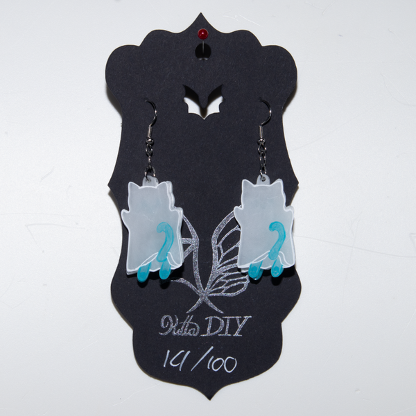 Ze zijn gemaakt van krimpplastic en gekleurd met potlood/oogschaduw/sublimatietechniek/poscastift. Daarna hebben sommige (maar niet alle!) oorbellen een laagje bescherming gekregen van nagellak/vernis/gellak.