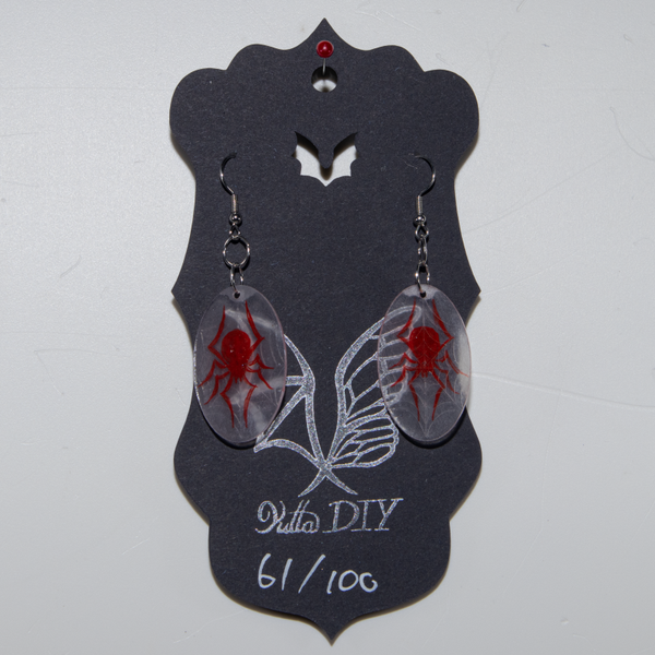 Ze zijn gemaakt van krimpplastic en gekleurd met potlood/oogschaduw/sublimatietechniek/poscastift. Daarna hebben sommige (maar niet alle!) oorbellen een laagje bescherming gekregen van nagellak/vernis/gellak.