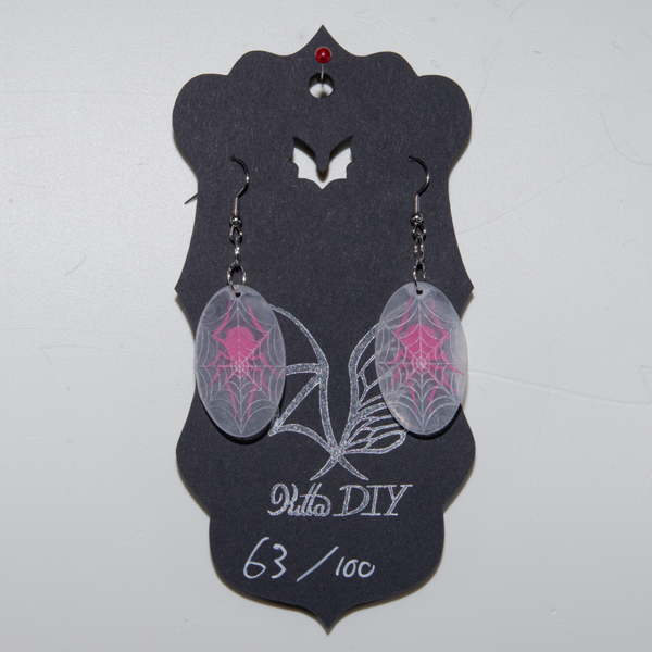 Ze zijn gemaakt van krimpplastic en gekleurd met potlood/oogschaduw/sublimatietechniek/poscastift. Daarna hebben sommige (maar niet alle!) oorbellen een laagje bescherming gekregen van nagellak/vernis/gellak.