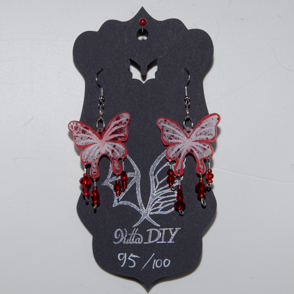 Ze zijn gemaakt van krimpplastic en gekleurd met potlood/oogschaduw/sublimatietechniek/poscastift. Daarna hebben sommige (maar niet alle!) oorbellen een laagje bescherming gekregen van nagellak/vernis/gellak.